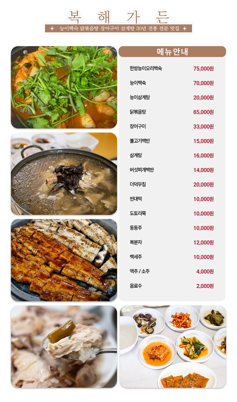 • 상호 : 복해가든 | 주소 : 충북 보은군 장안면 개안길 15-9 | 대표전화 : 043-543-0606 | 사업자번호 : 302-10-26604 | 대표자:김복한